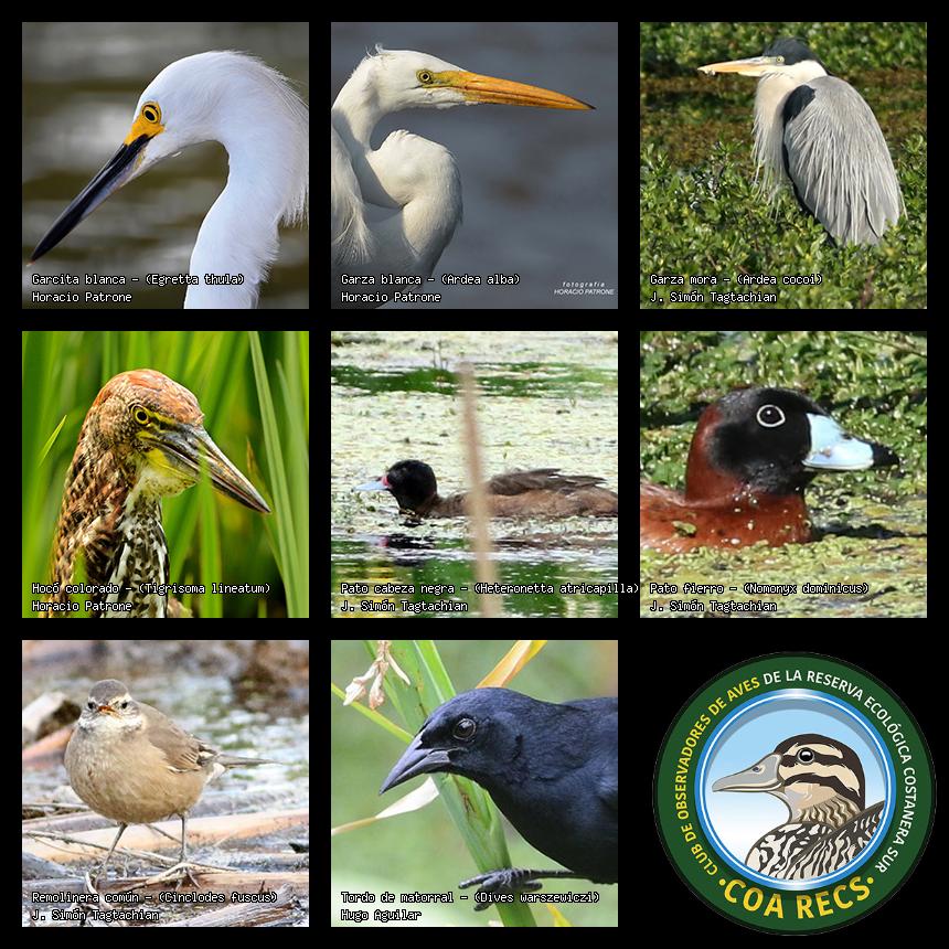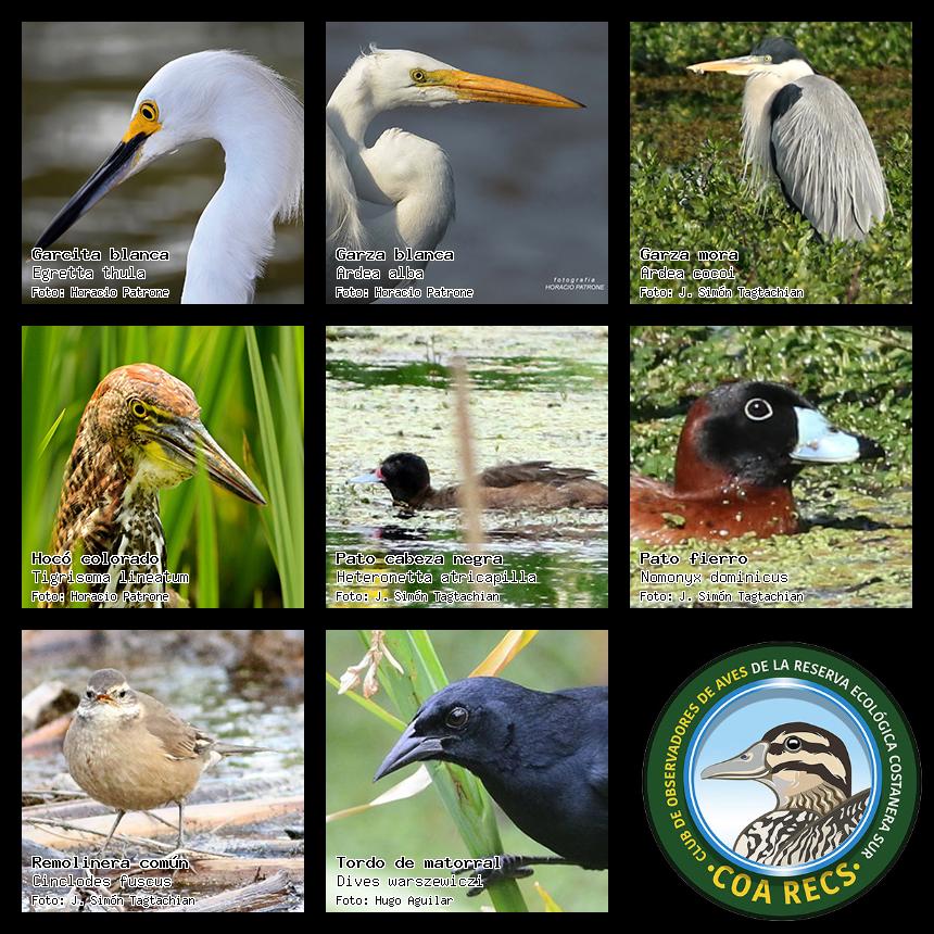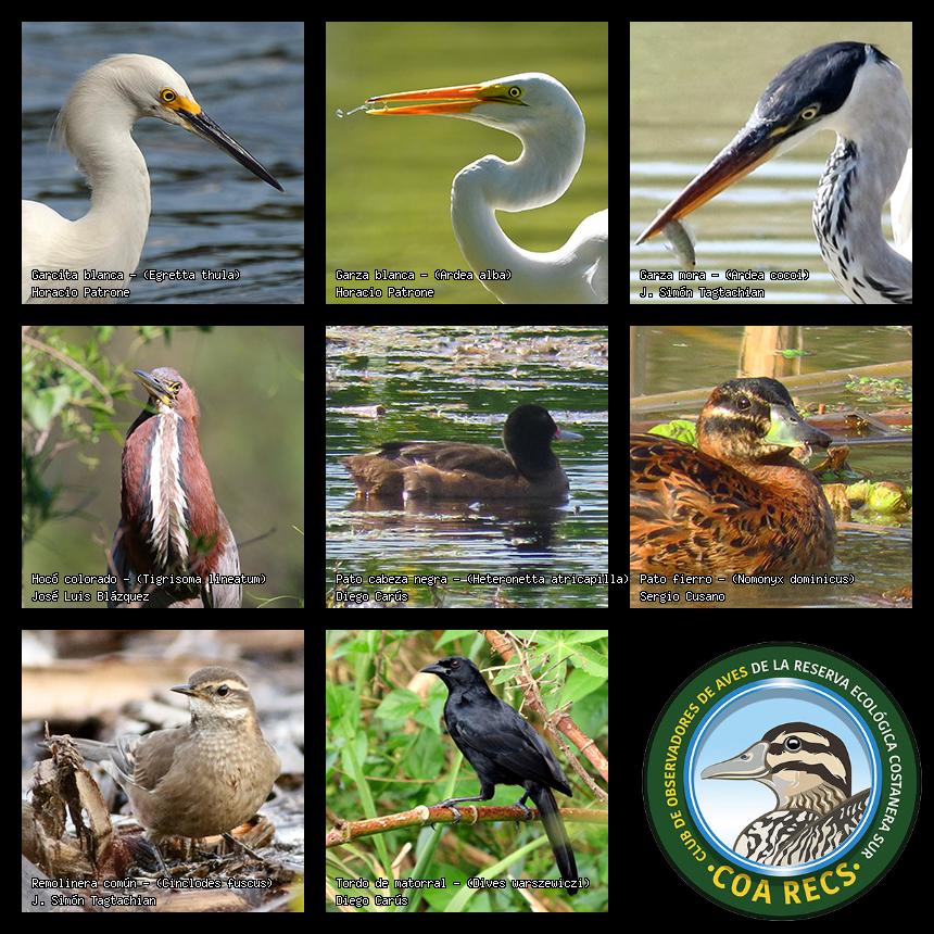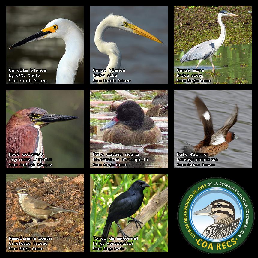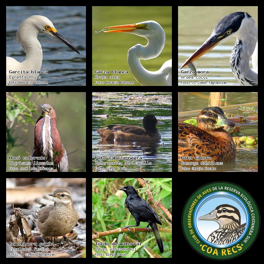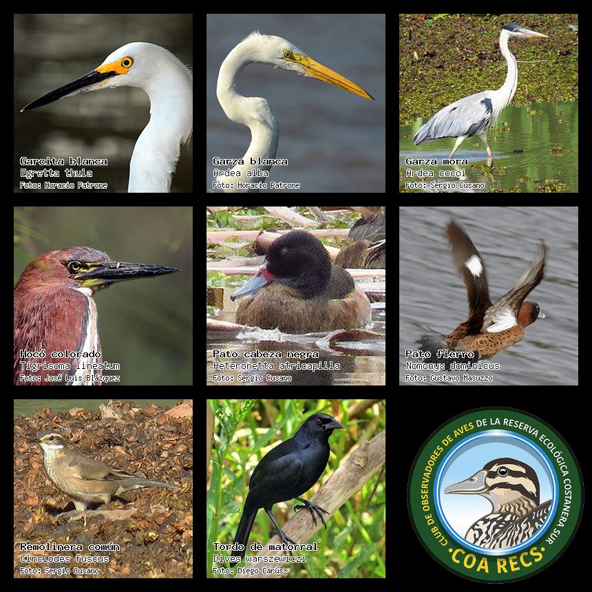 (Gavilán mixto, Carancho, Chimango, Benteveo común, Hornero, Carpintero real y Estornino pinto)