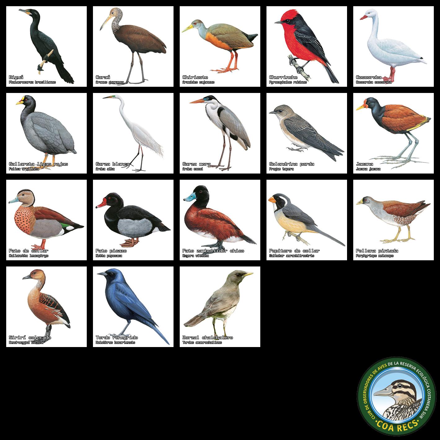 Lista de aves para usar en relevamientos y censos: