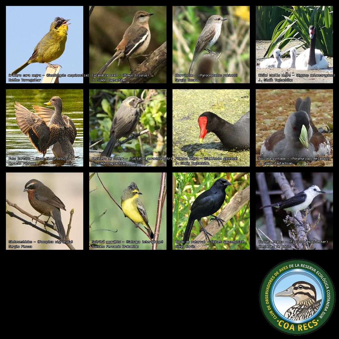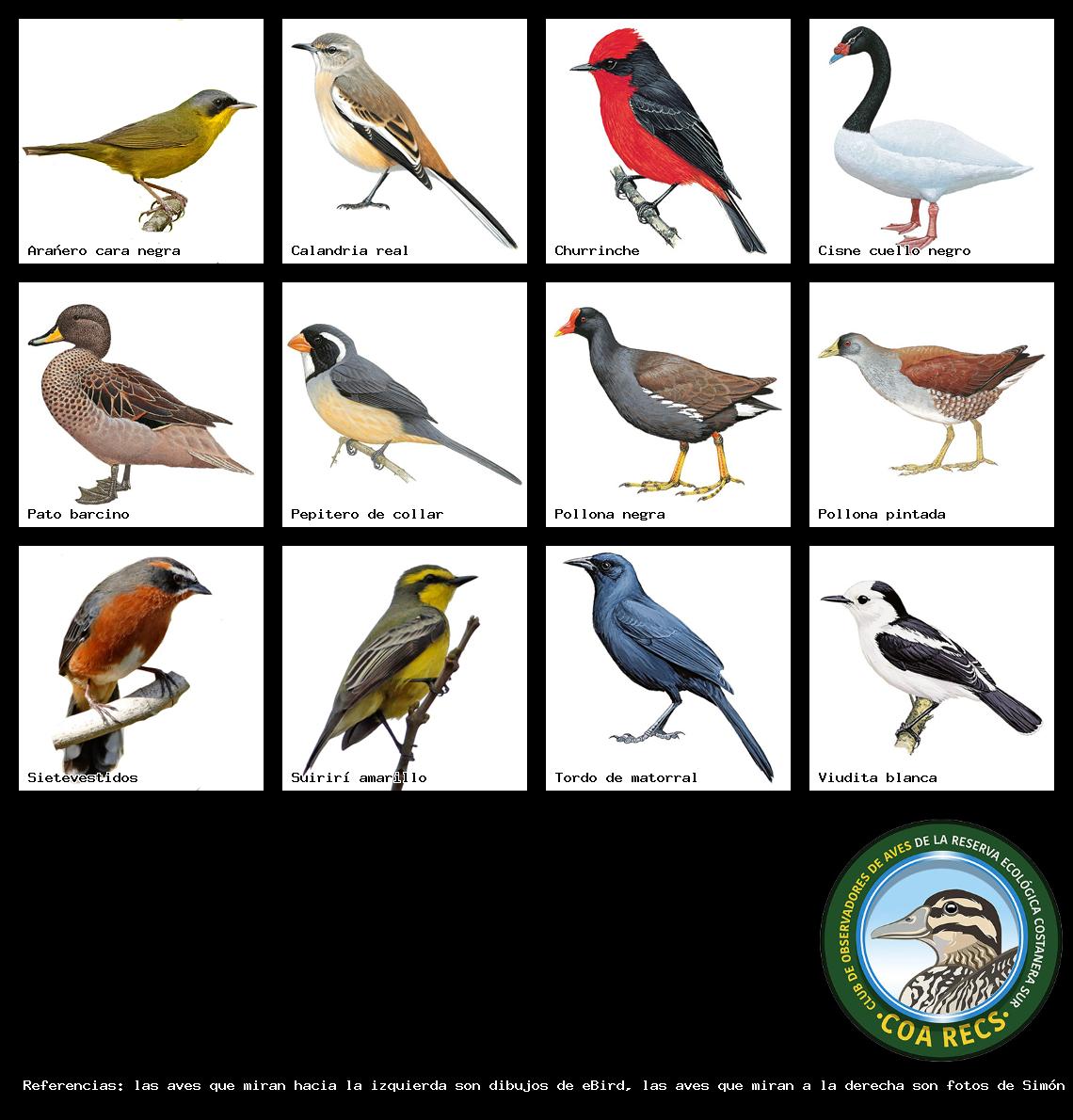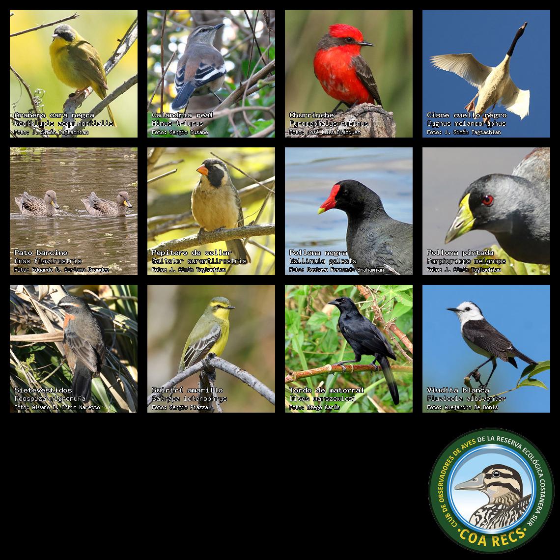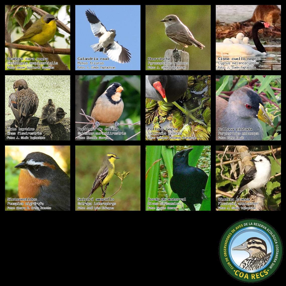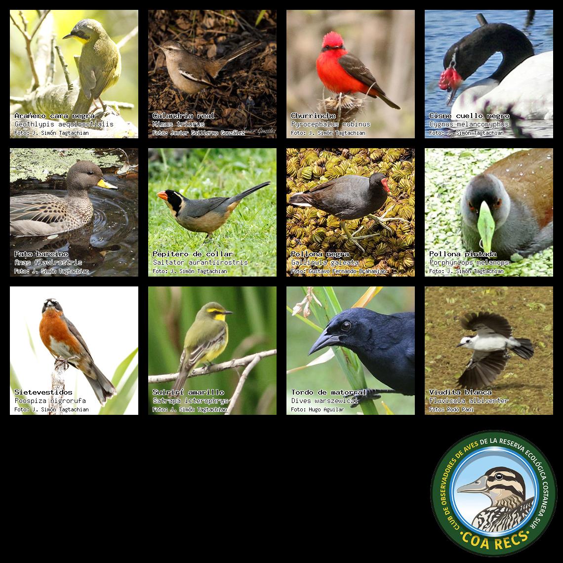 (Gavilán mixto, Carancho, Chimango, Benteveo común, Hornero, Carpintero real y Estornino pinto)