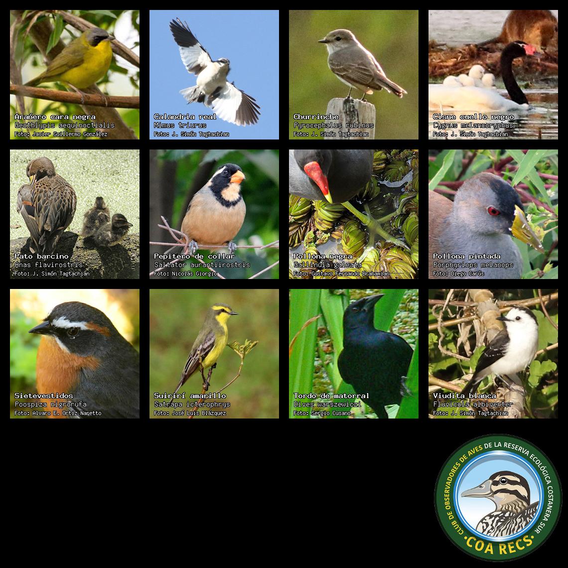 Se encuentran cargadas 12 especies de aves para el día 29/09/2016.
