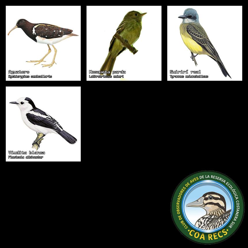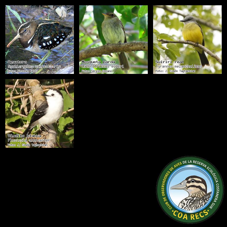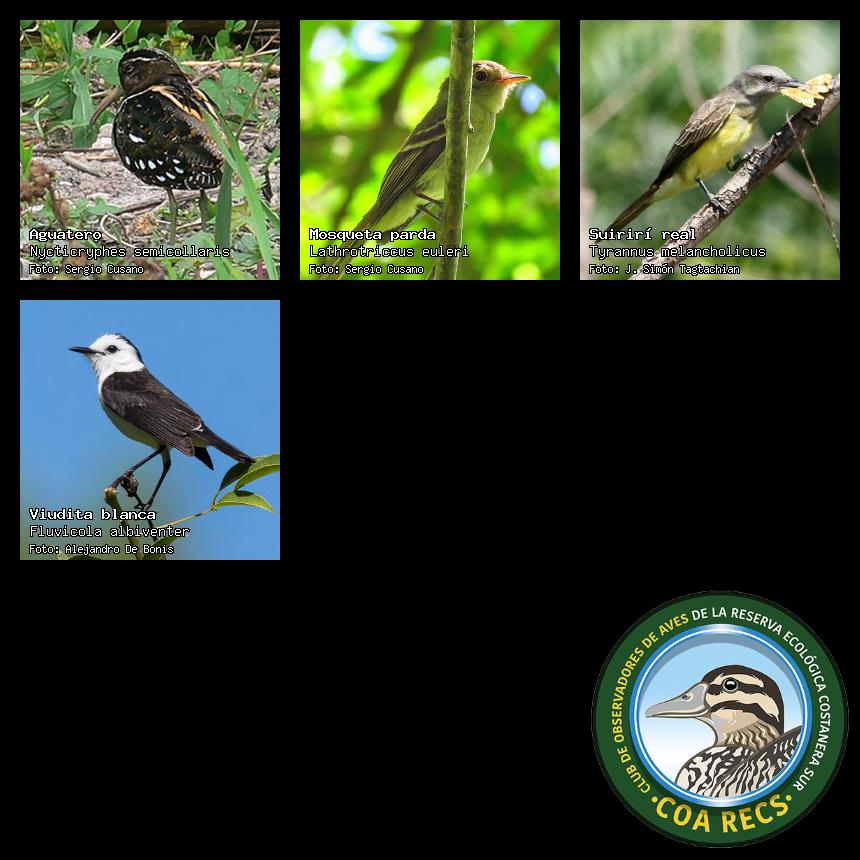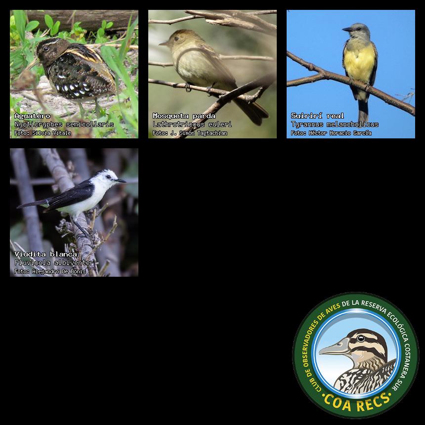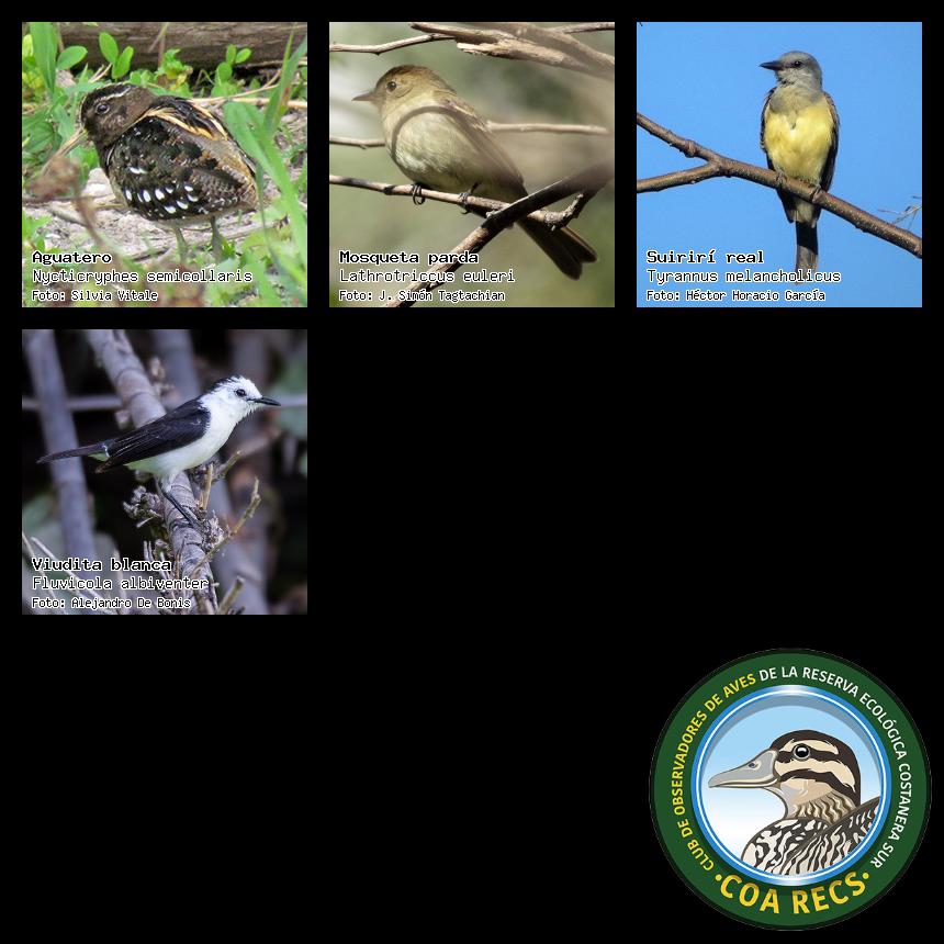 (Gavilán mixto, Carancho, Chimango, Benteveo común, Hornero, Carpintero real y Estornino pinto)