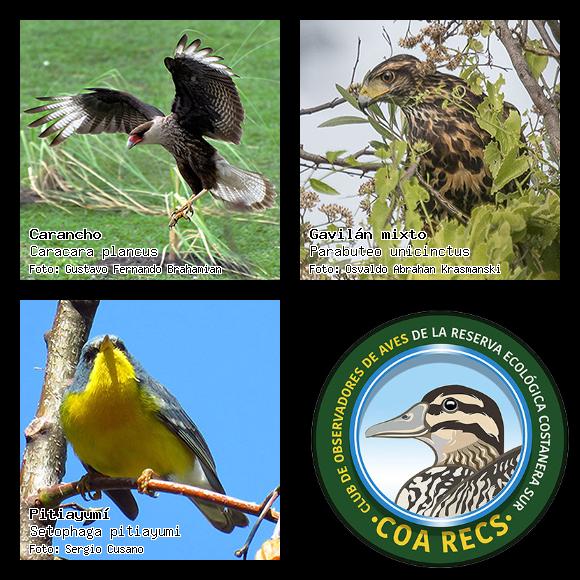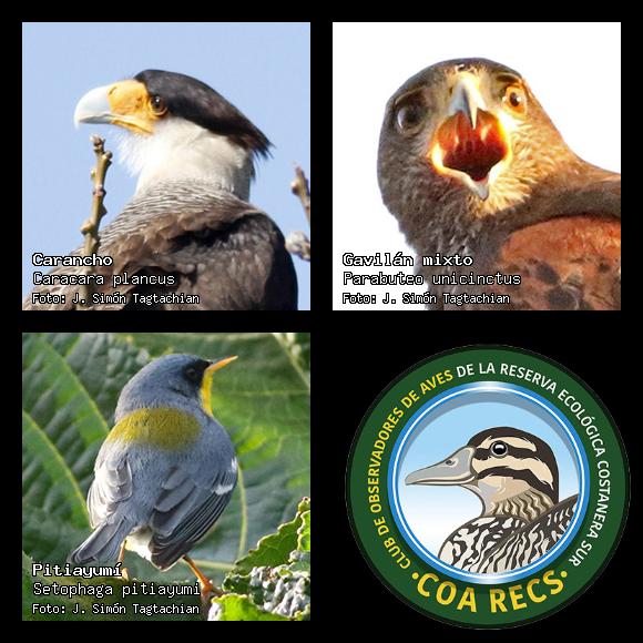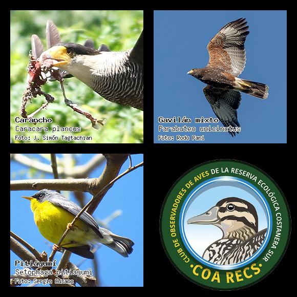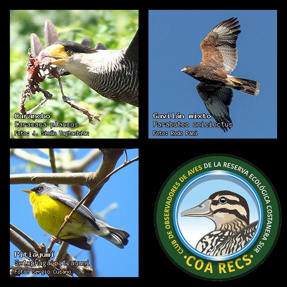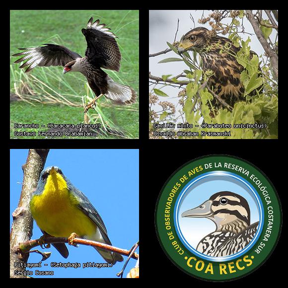 (Gavilán mixto, Carancho, Chimango, Benteveo común, Hornero, Carpintero real y Estornino pinto)