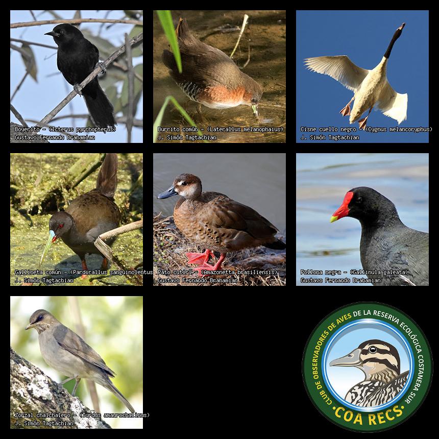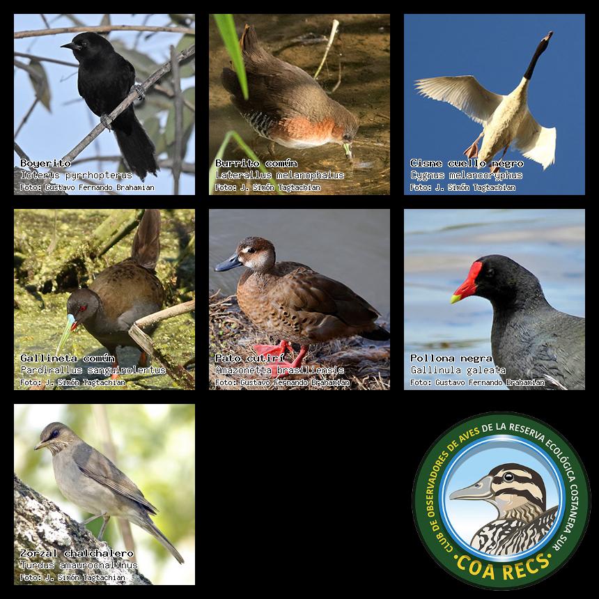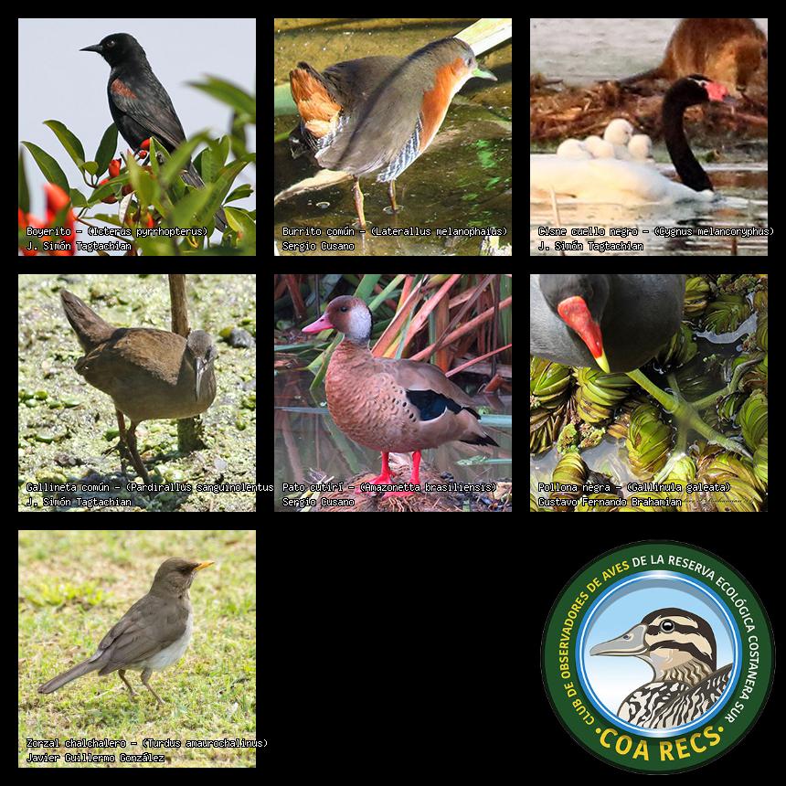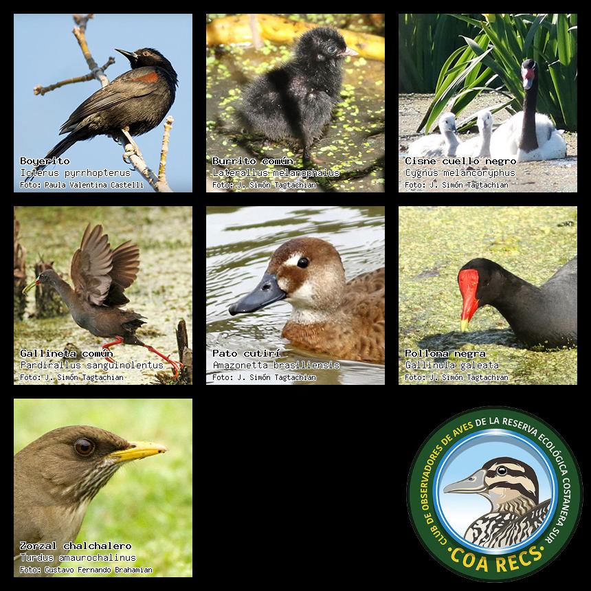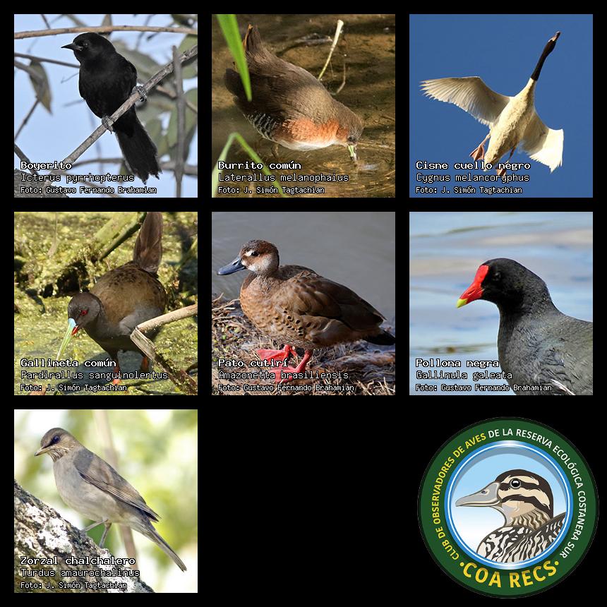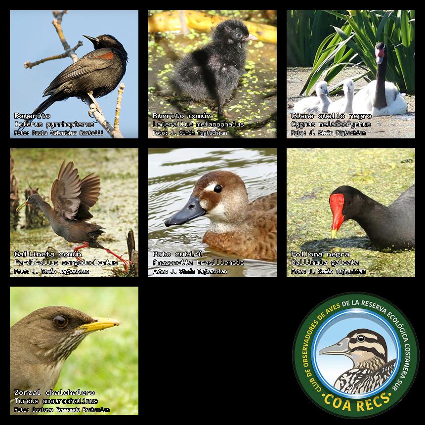 (Gavilán mixto, Carancho, Chimango, Benteveo común, Hornero, Carpintero real y Estornino pinto)