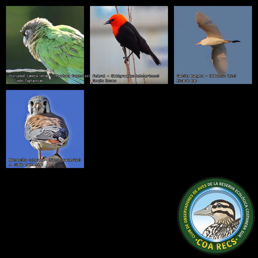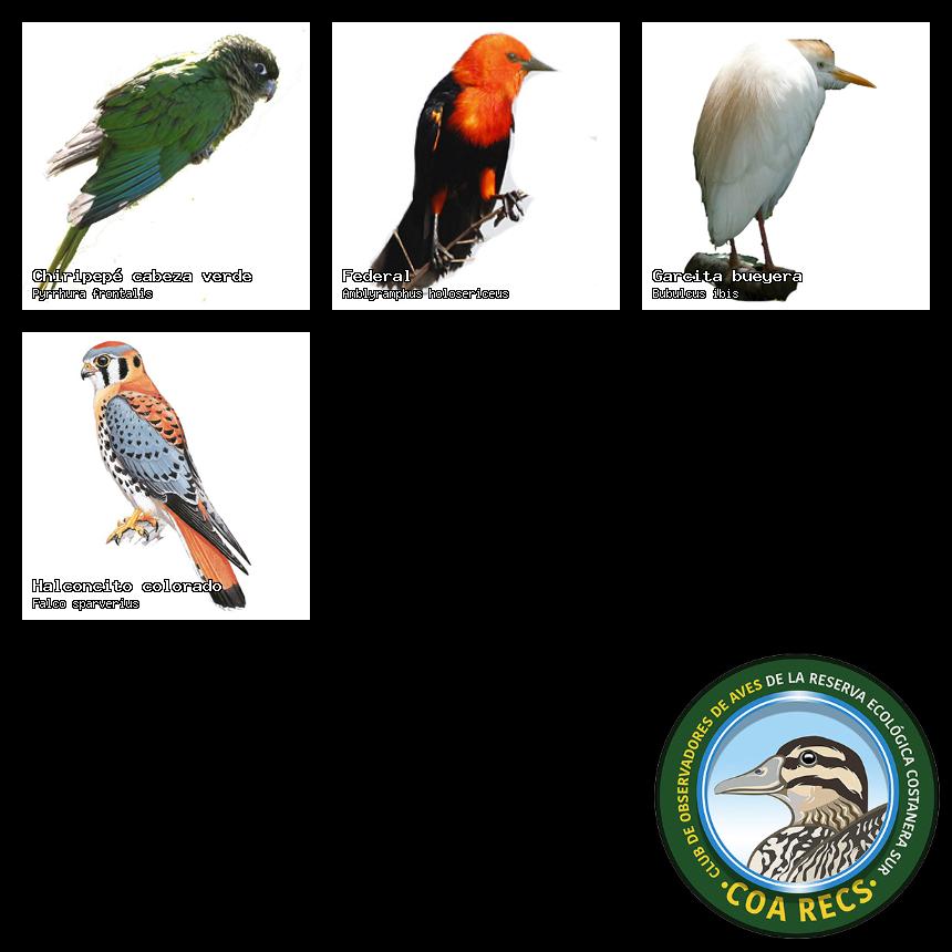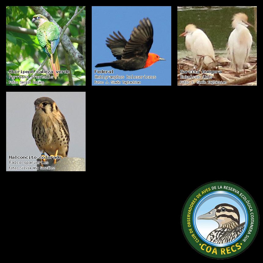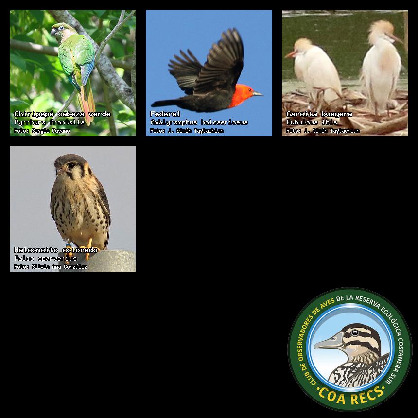 (Gavilán mixto, Carancho, Chimango, Benteveo común, Hornero, Carpintero real y Estornino pinto)