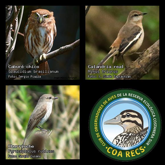 (Gavilán mixto, Carancho, Chimango, Benteveo común, Hornero, Carpintero real y Estornino pinto)