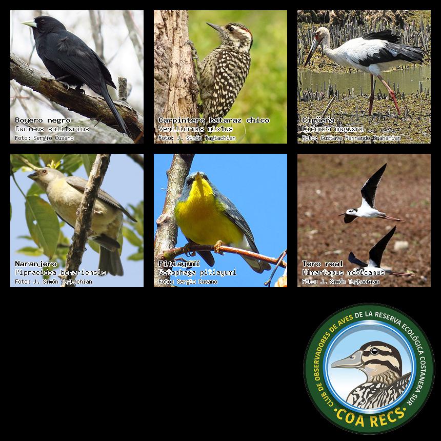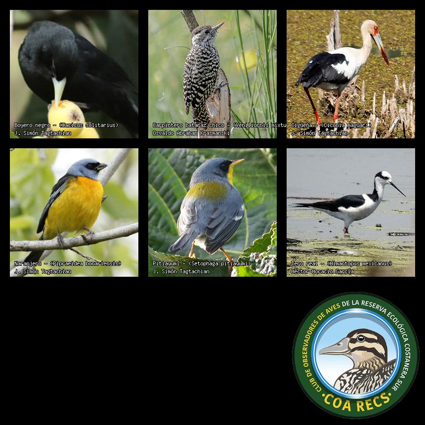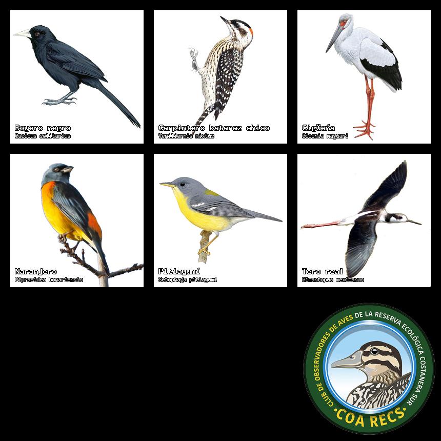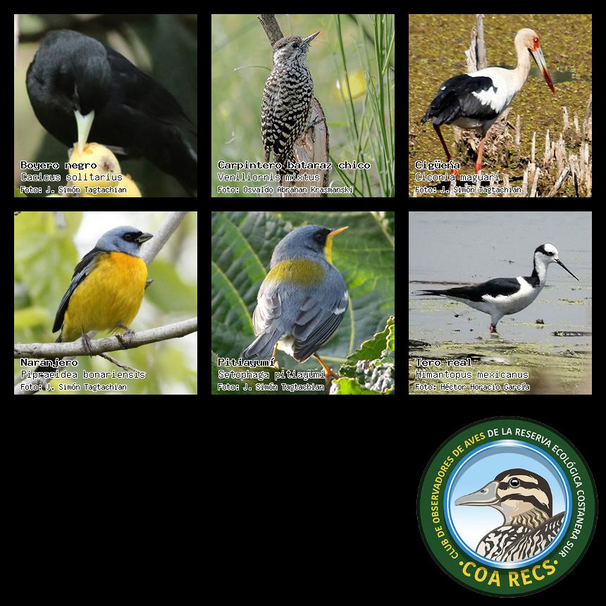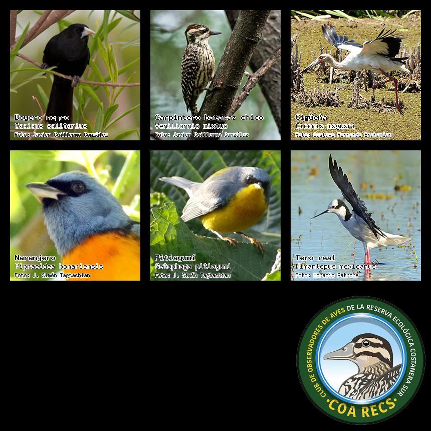 (Gavilán mixto, Carancho, Chimango, Benteveo común, Hornero, Carpintero real y Estornino pinto)