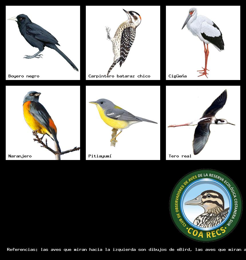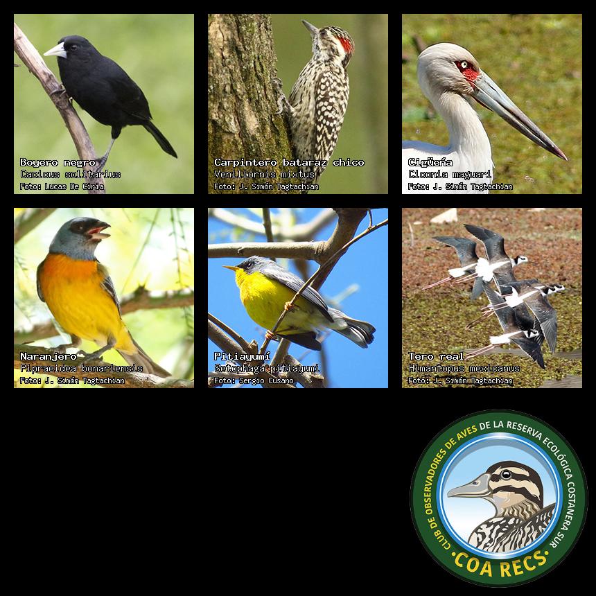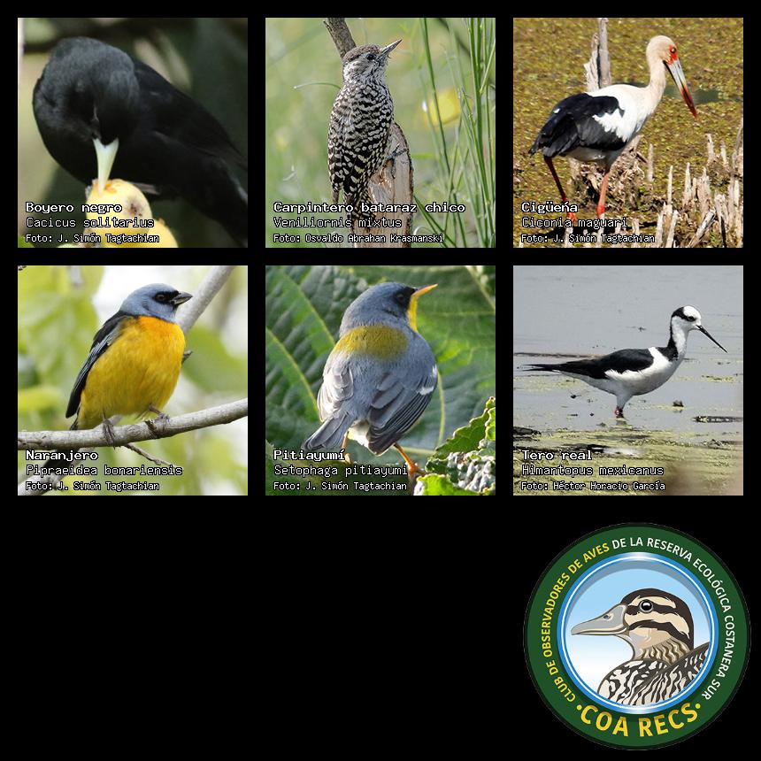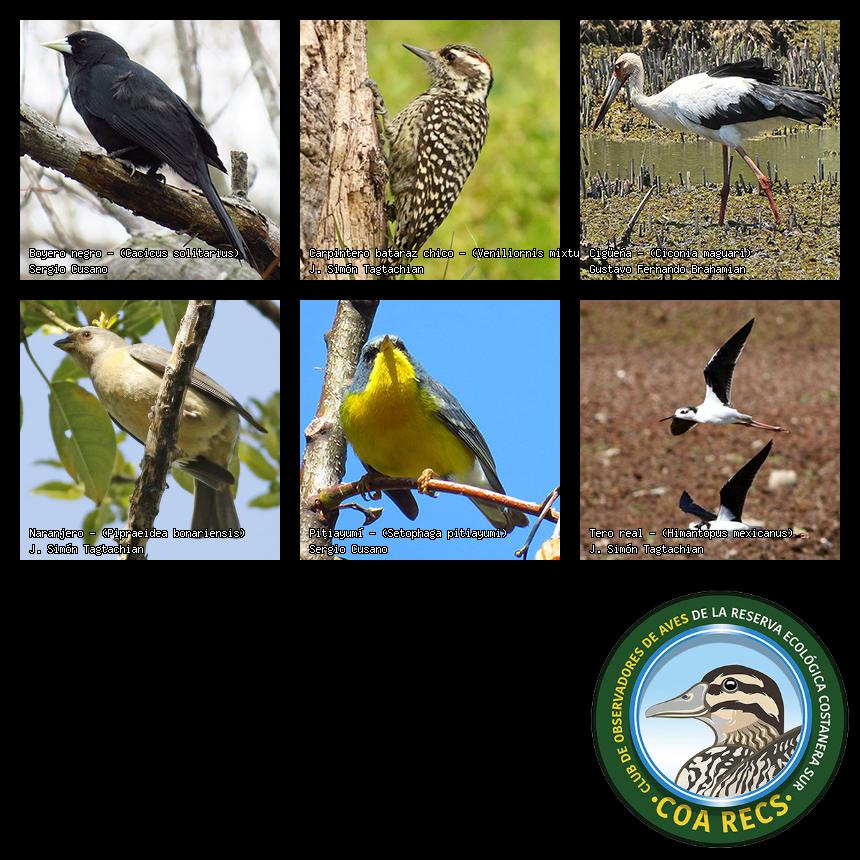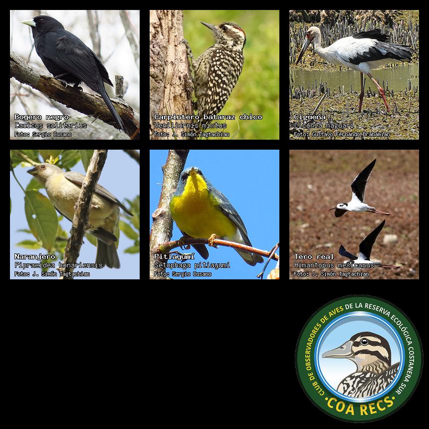(Gavilán mixto, Carancho, Chimango, Benteveo común, Hornero, Carpintero real y Estornino pinto)