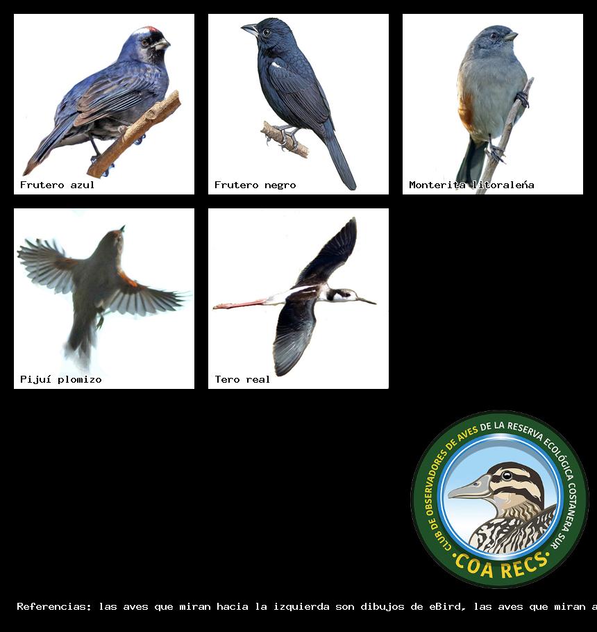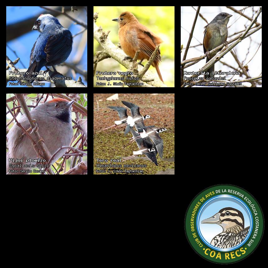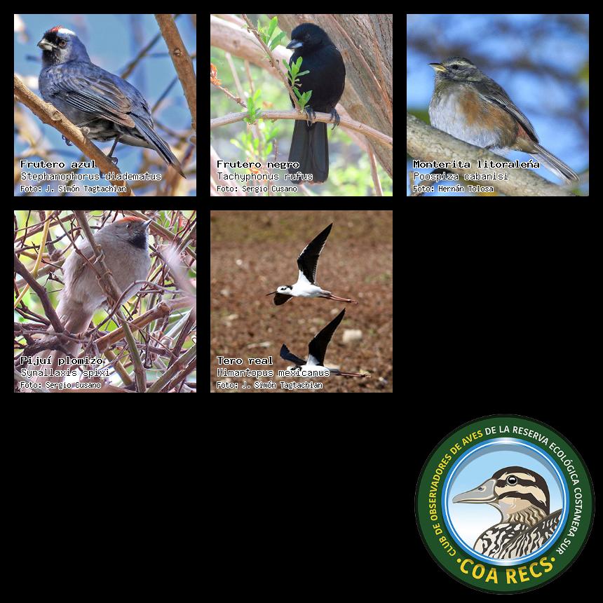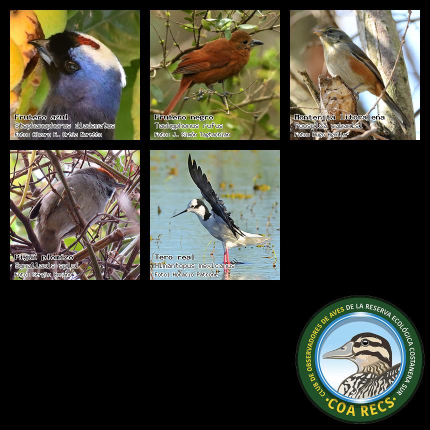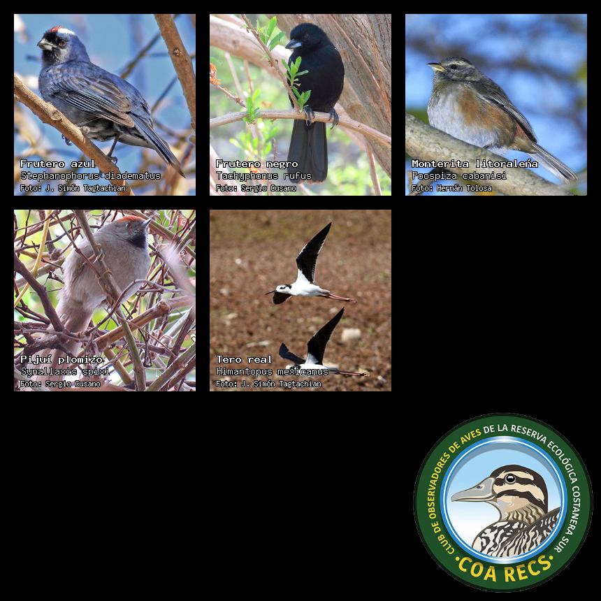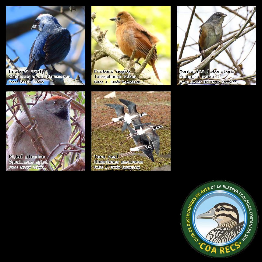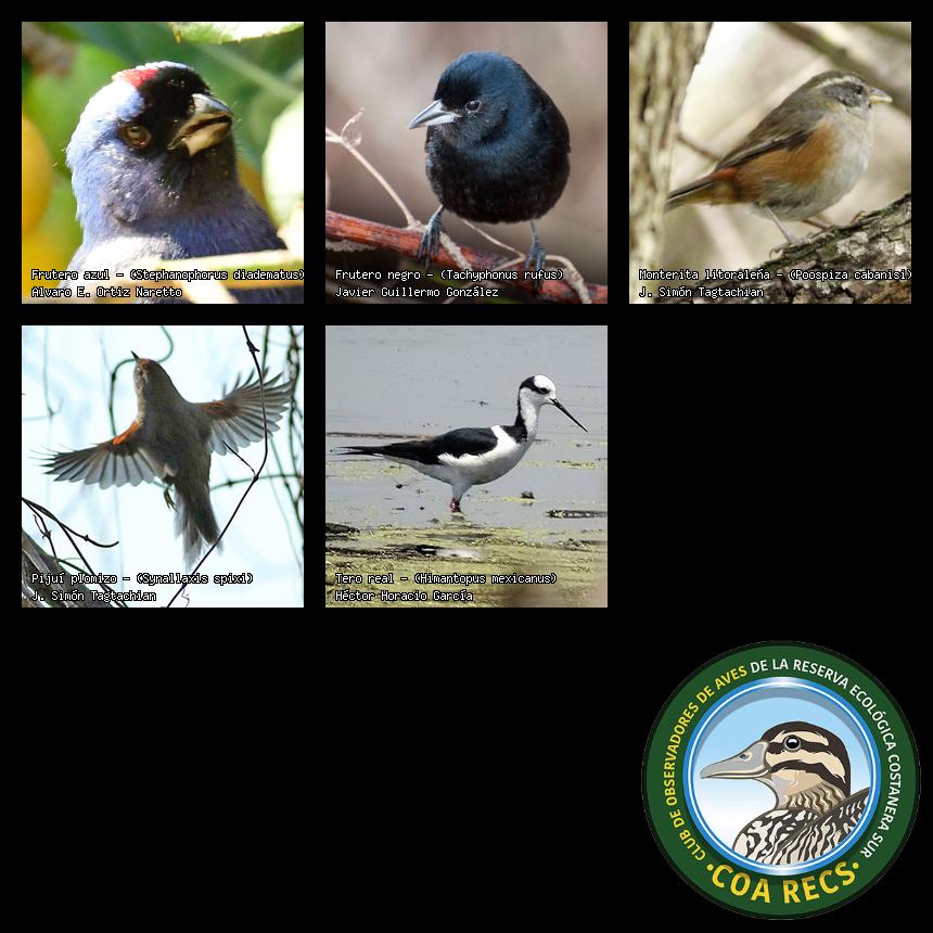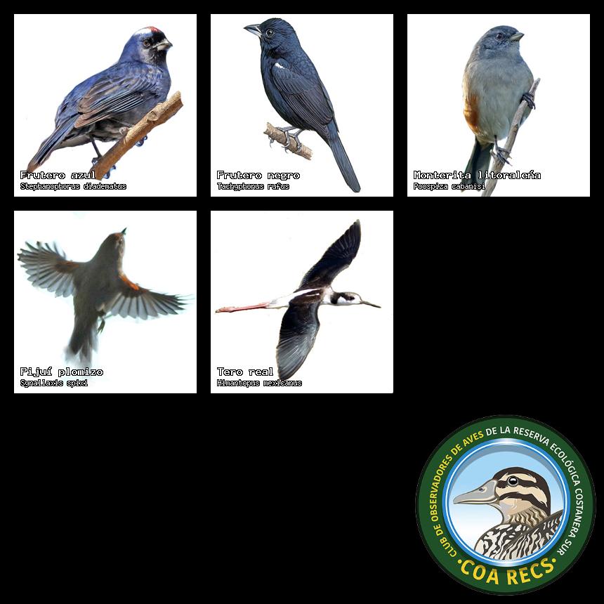 (Gavilán mixto, Carancho, Chimango, Benteveo común, Hornero, Carpintero real y Estornino pinto)