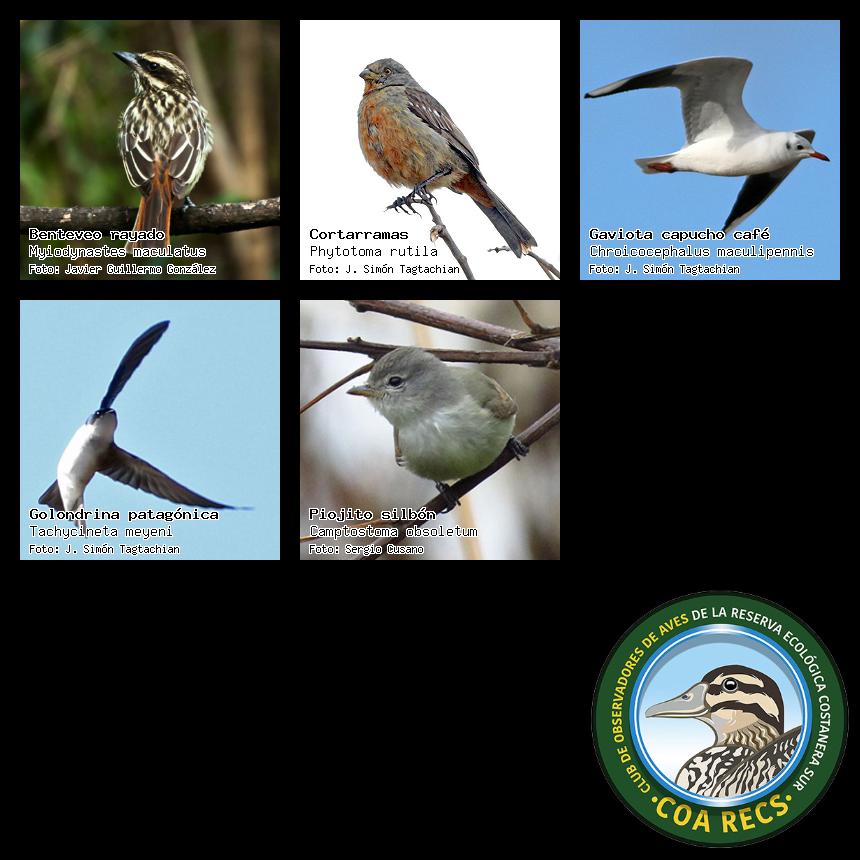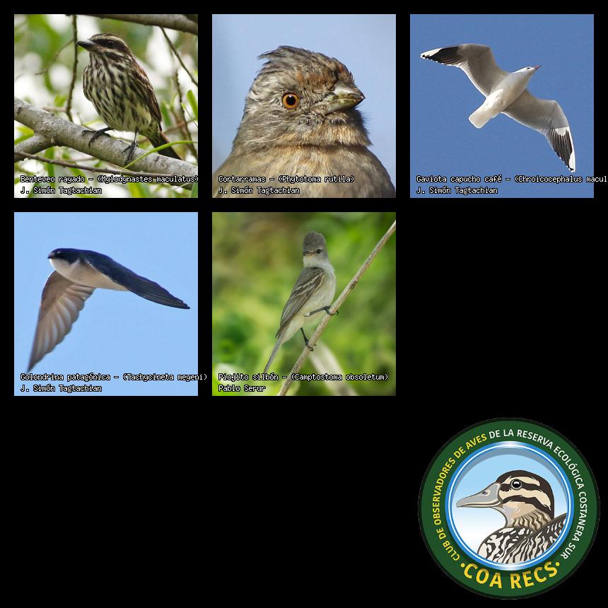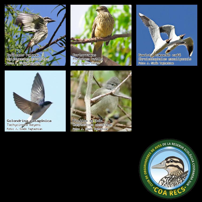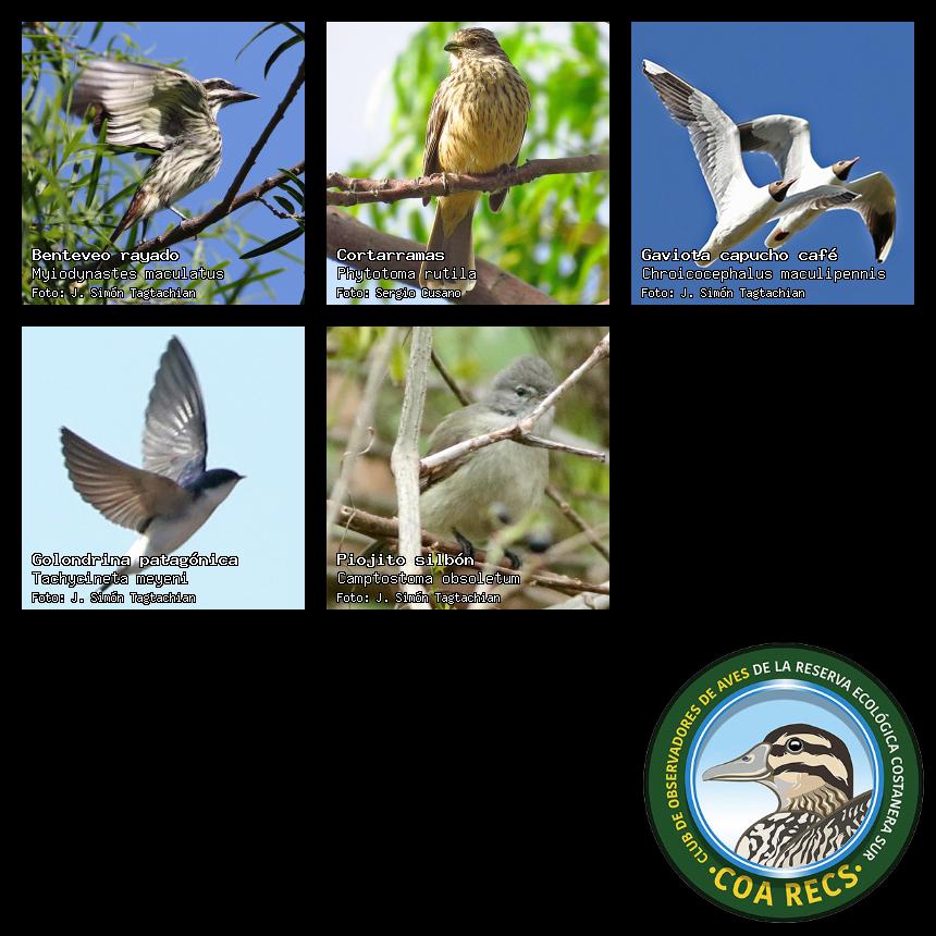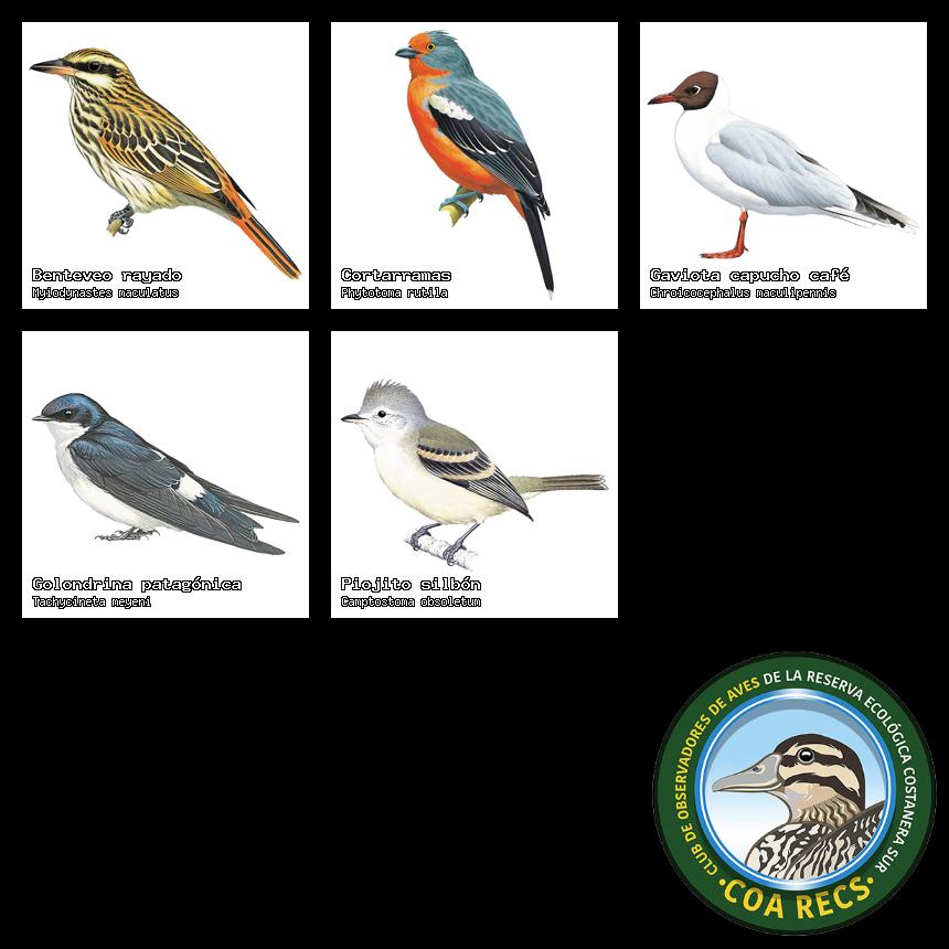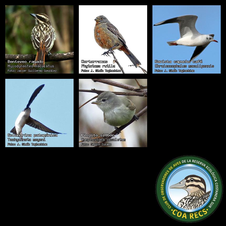 (Gavilán mixto, Carancho, Chimango, Benteveo común, Hornero, Carpintero real y Estornino pinto)