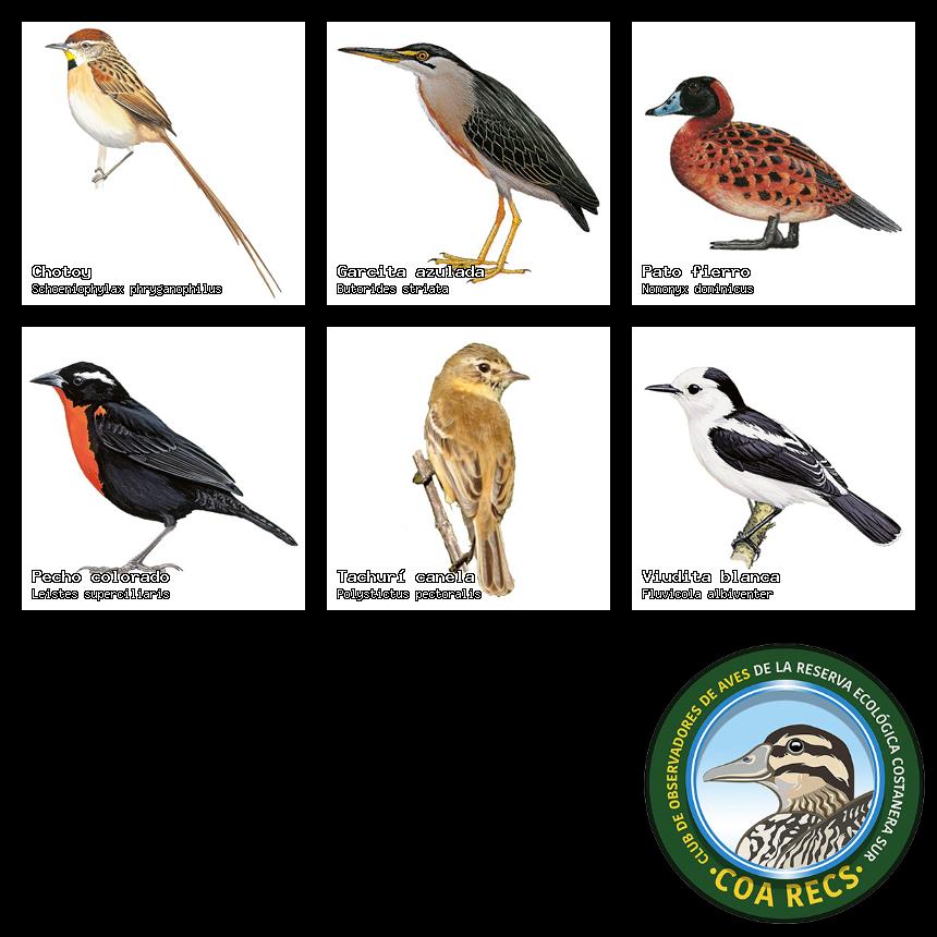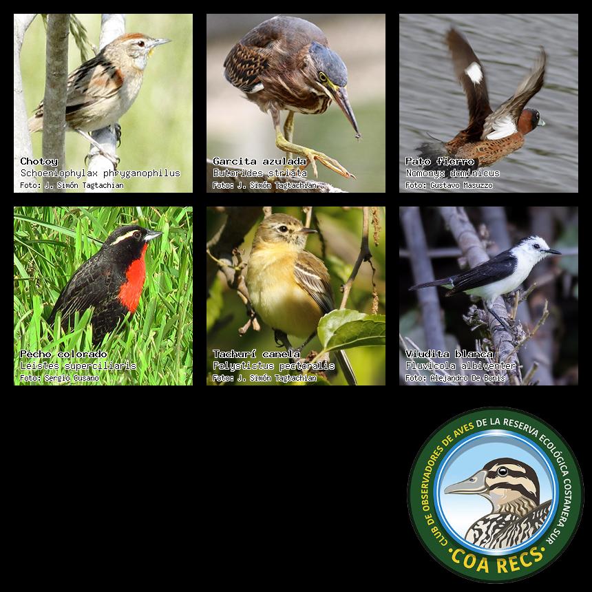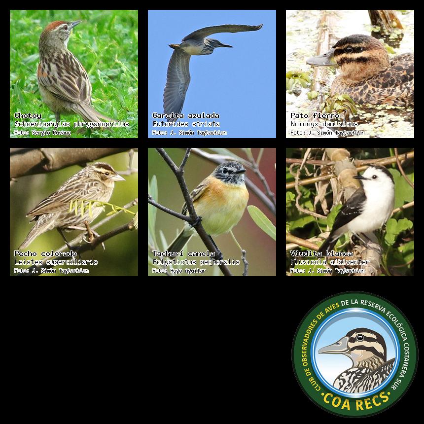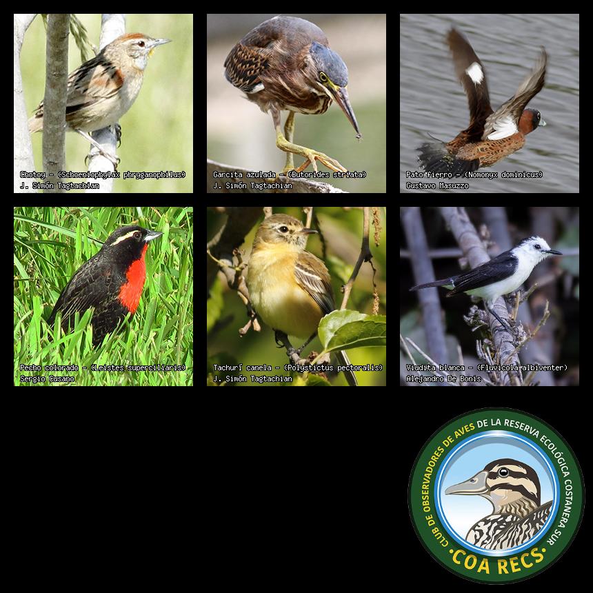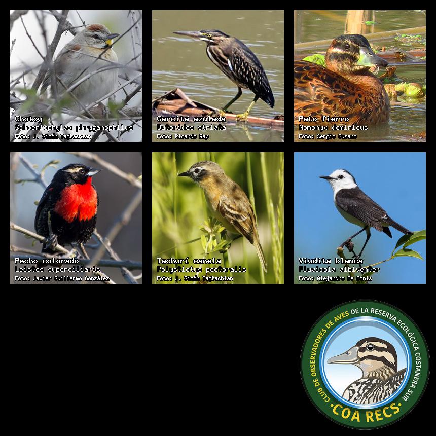 (Gavilán mixto, Carancho, Chimango, Benteveo común, Hornero, Carpintero real y Estornino pinto)