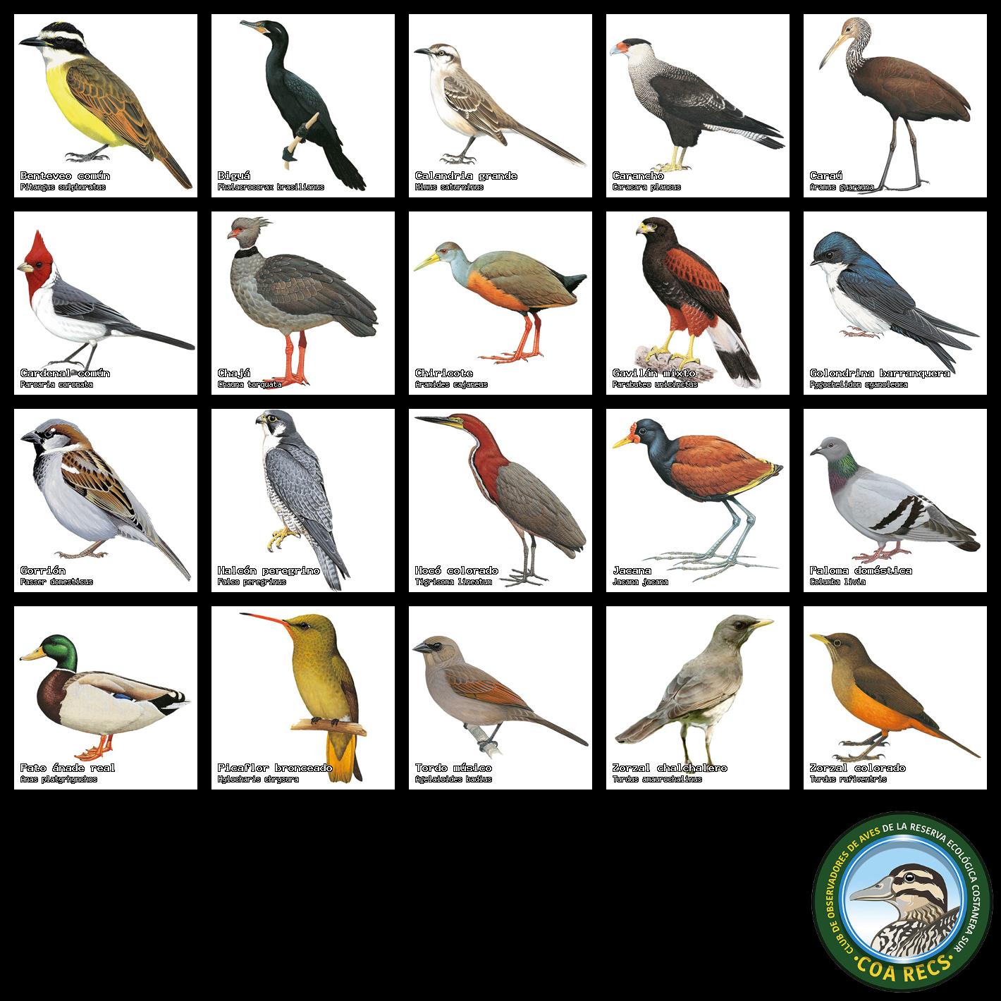 Lista de aves para usar en relevamientos y censos: