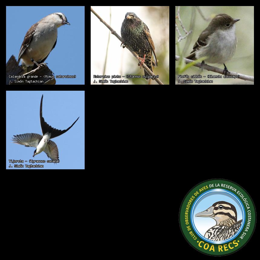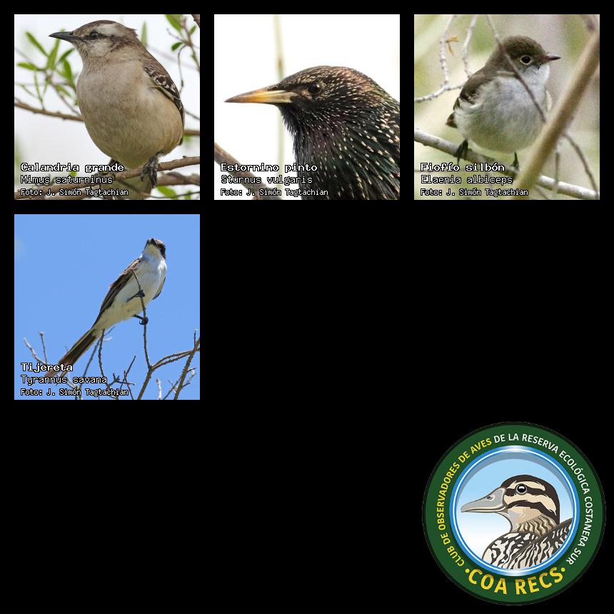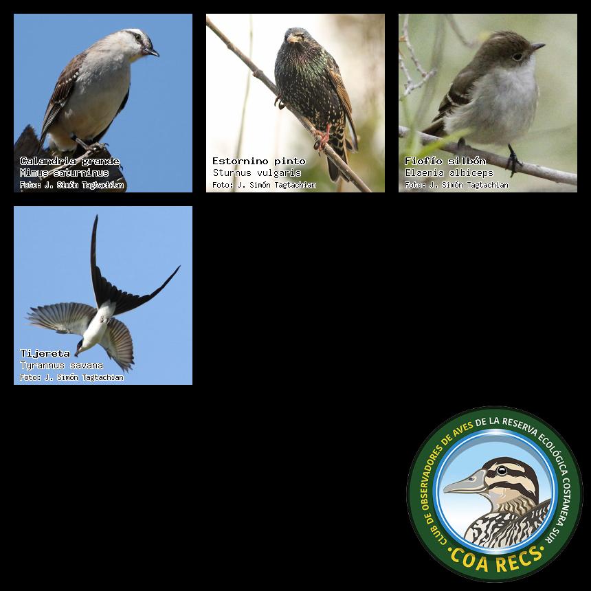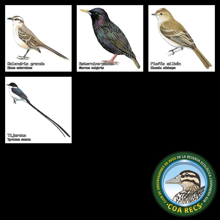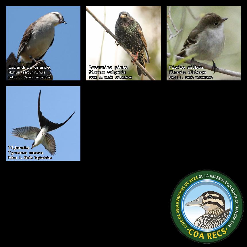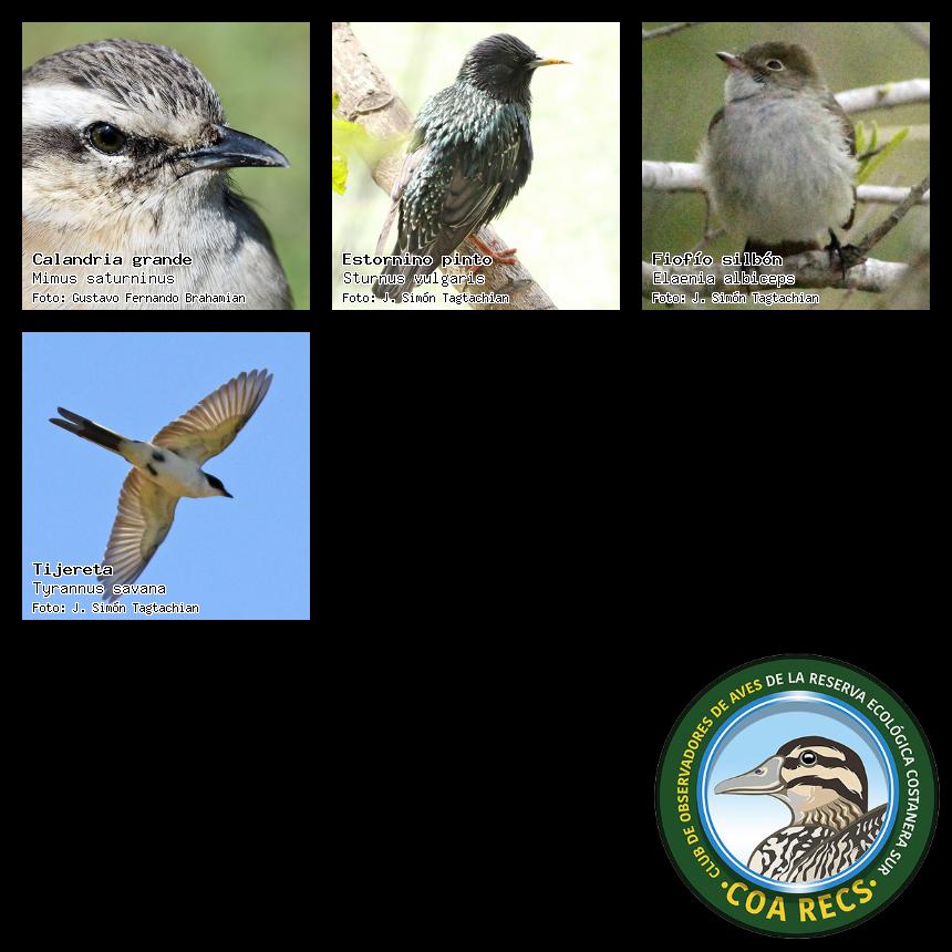 (Gavilán mixto, Carancho, Chimango, Benteveo común, Hornero, Carpintero real y Estornino pinto)