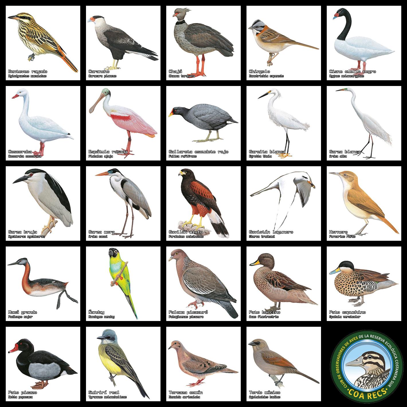 Lista de aves para usar en relevamientos y censos: